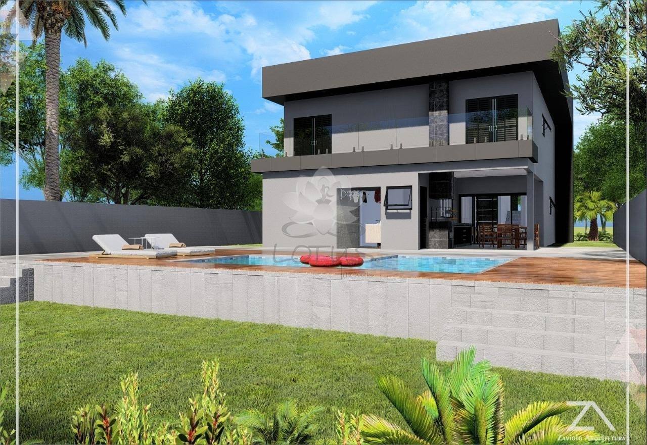 Projeto prático e moderno , com 4 suítes, sendo 1 no piso térreo, sala de Estar, TV e Jantar em conceito aberto integrada a área gourmet e cozinha, Escritório, Lavabo e Piscina.