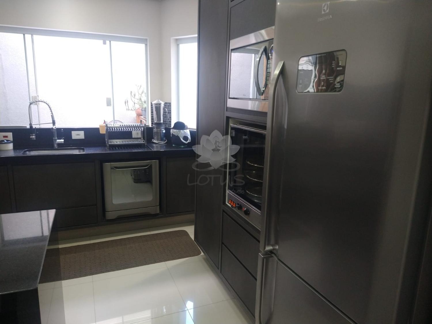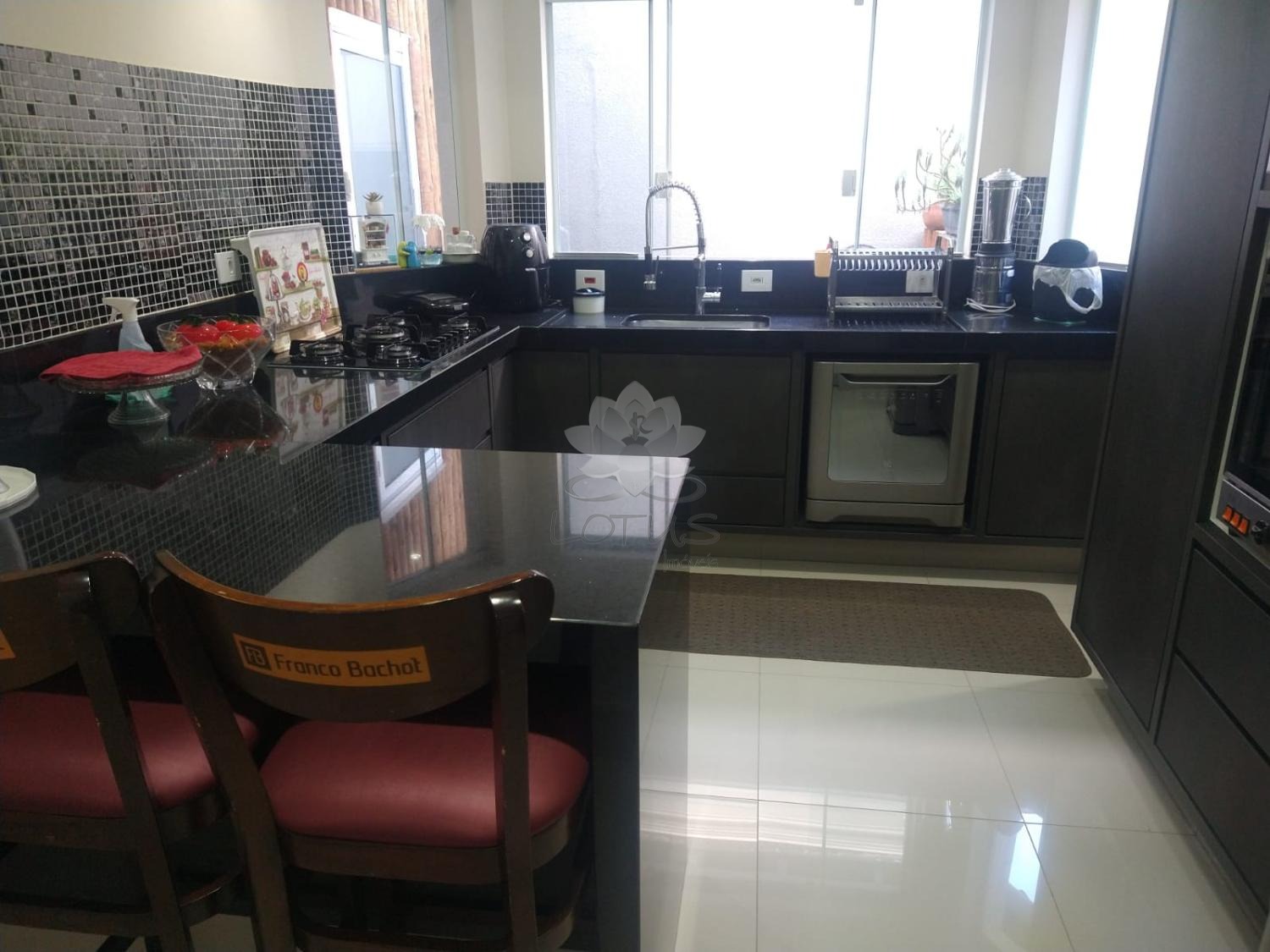 • Cozinha planejada com armários e bancada em granito
