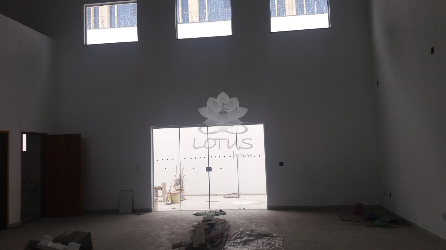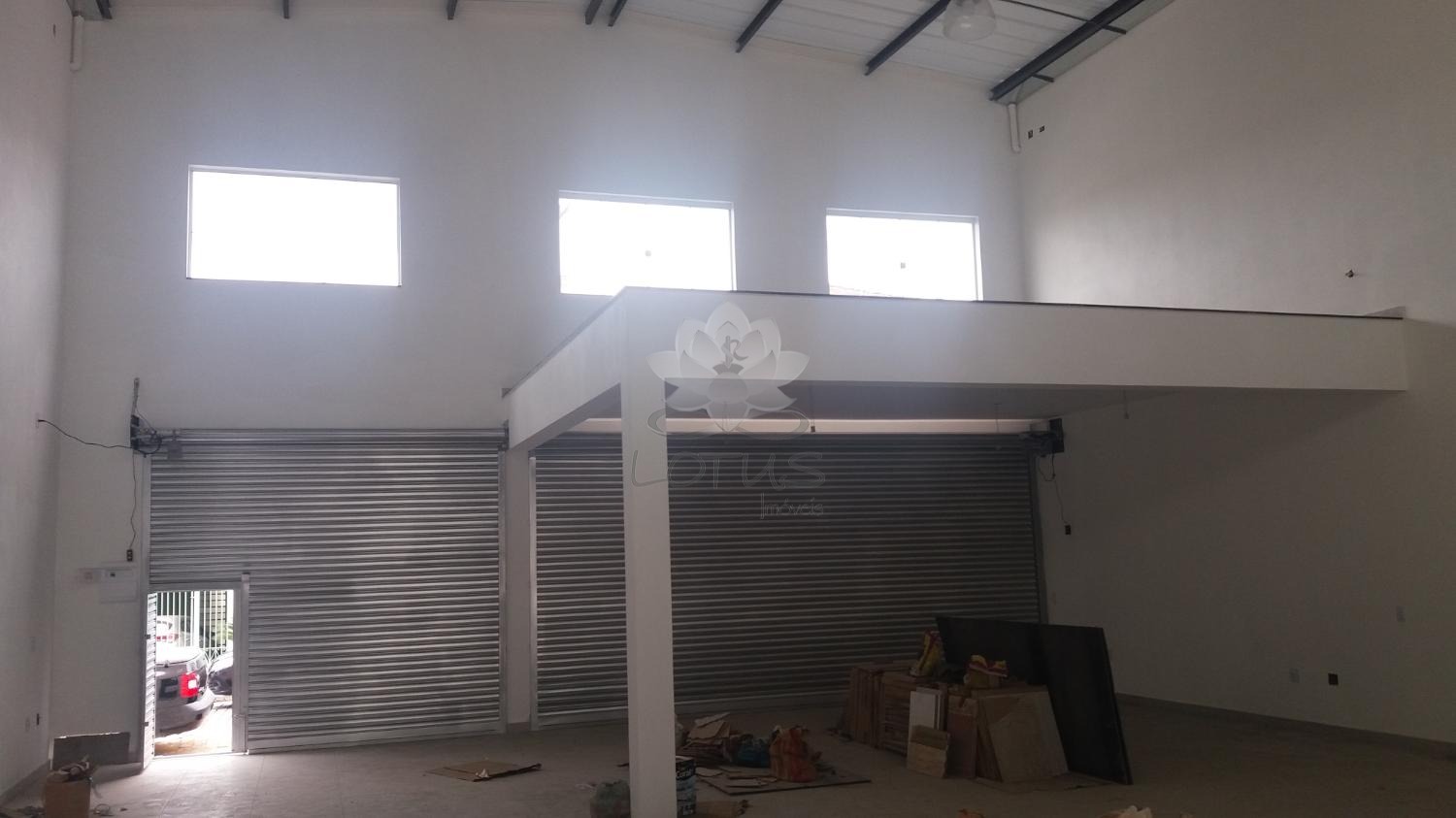 Conta com salão térreo, mezanino para escritório e 2 banheiros